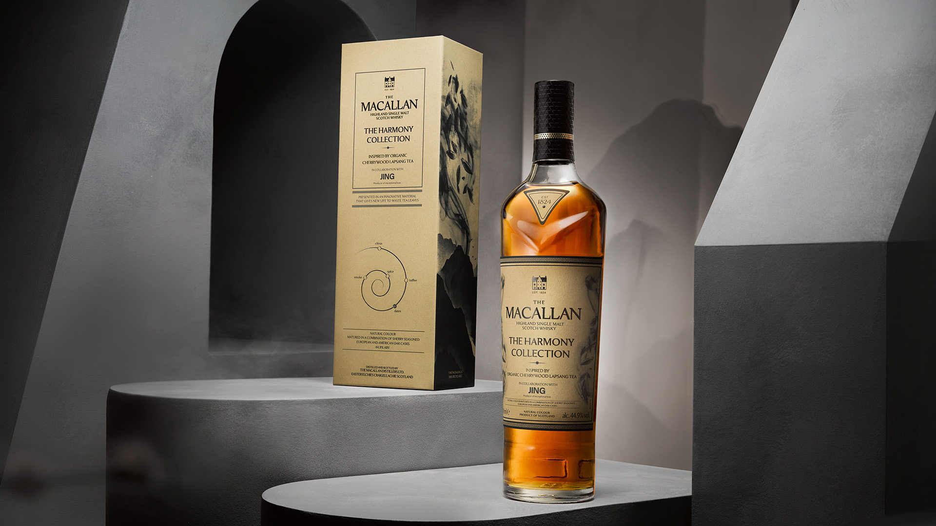 The Macallan presenta la más reciente incorporación a su Harmony Collection, con dos whiskies excepcionales creados en una colaboración única con JING, curadores de algunos de los tés de jardín único más distinguidos y refinados del mundo.